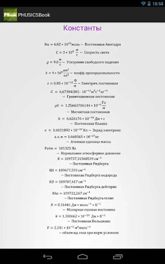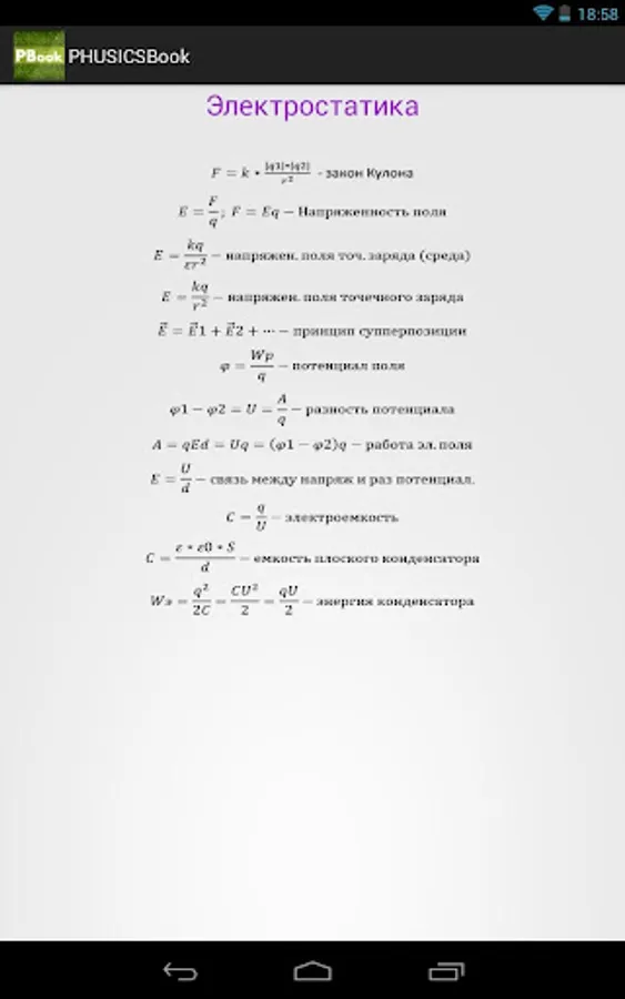 The application is a complete collection of the most important formulas on all the topics school physics course, you may need the Single State Exam.