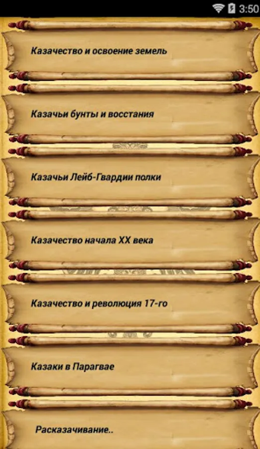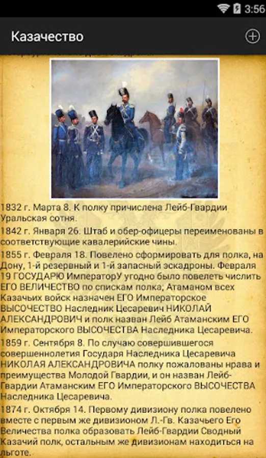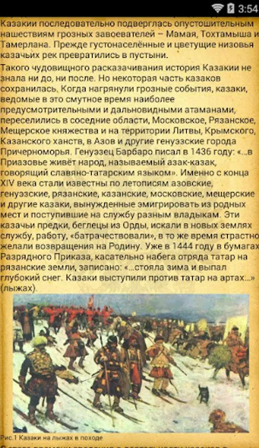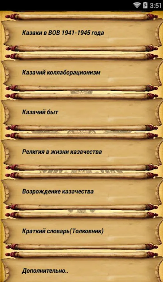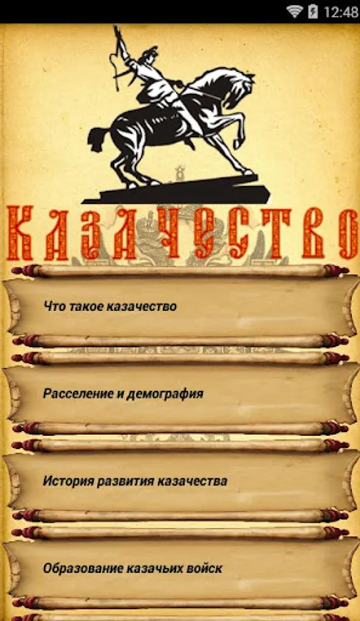 The most complete collection of materials about ISTO Cossacks. From the application, you will learn all about the history, the way of life of the Cossacks, as well as the most famous representatives of the Cossacks. Cossack glory. Kazachestva.Kultura maritime history and traditions of the Russian kazachestva.No and it is certainly not a complete spisok.Vy learn about Education Cossack troops, who are the Zaporizhzhya Cossacks, Cossacks and other policemen. Learn about the uprisings and riots kazakov.Uznaete how was rasskazachivanie and Cossacks recovery Rossii.Kazachi songs, legends and stories. There is a Cossack Cossack guide with explanations of terms.