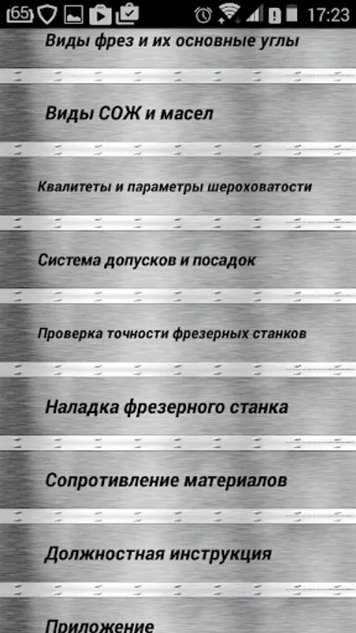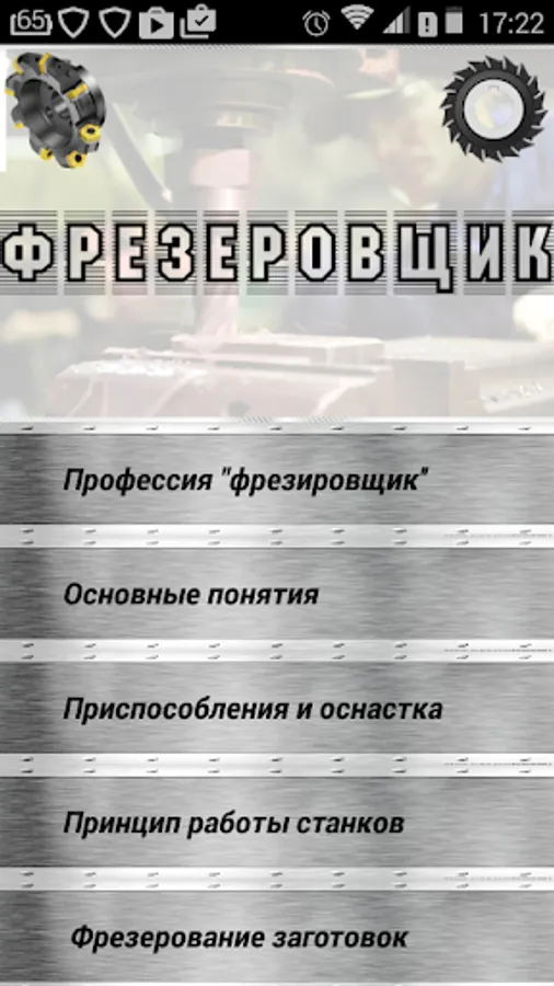 Concepts, milling, device and principle of operation of the same type milling machines, name, labeling and the basic properties of the processed materials; name, appointment and conditions of use of the most common devices, device control and measuring instruments, types of cutters and their basic angles, the purpose and properties of fluids and oils; Tolerances and landing system; kvalitet and roughness parameters, the design and verification of complex rules on the accuracy of the universal milling and copying, jig boring, horizontal, vertical and special milling machines of various types and designs; calculations related to adjustment of machine tools; resistance materials as well as the job description and more necessary in the miller.