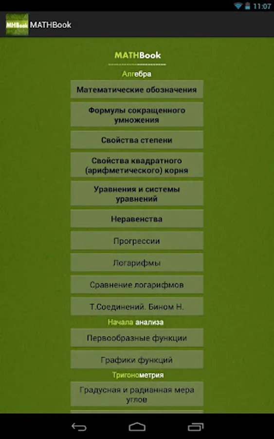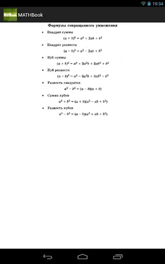 The application is a complete collection of the most important formulas on all the topics of school course in algebra, which can be necessary for the Unified State Exam.