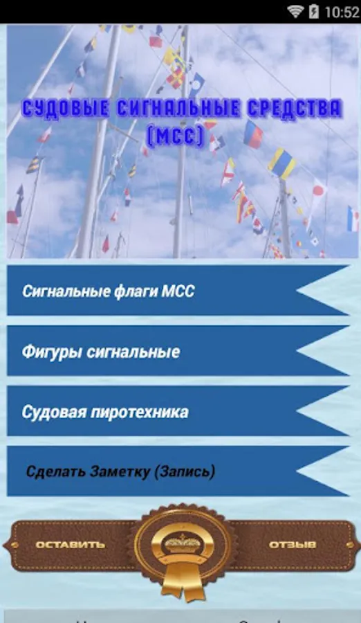 Ship sredstva.Klassifikatsiya signaling means signaling. International Code of Signals. Pyrotechnic means of communication. Signaling means sudne.Ukazan by small set of flags fixed form, size, pattern and colors, designed to perform the visual communication between ships or the coast. Described types of signal means, which give when burning light, sound or smoke effects. These include missiles (signal cartridges), flares, sound grenades, smoke bombs flying, etc.