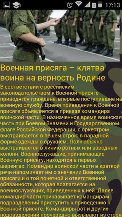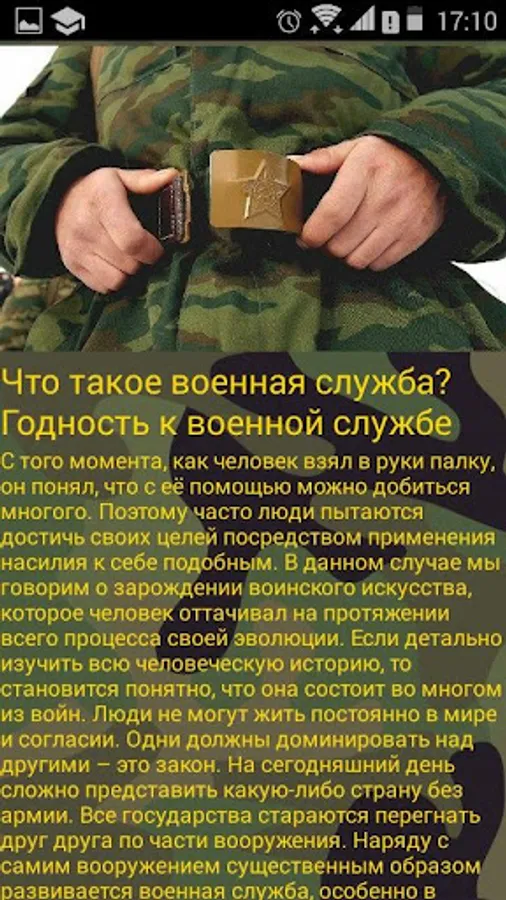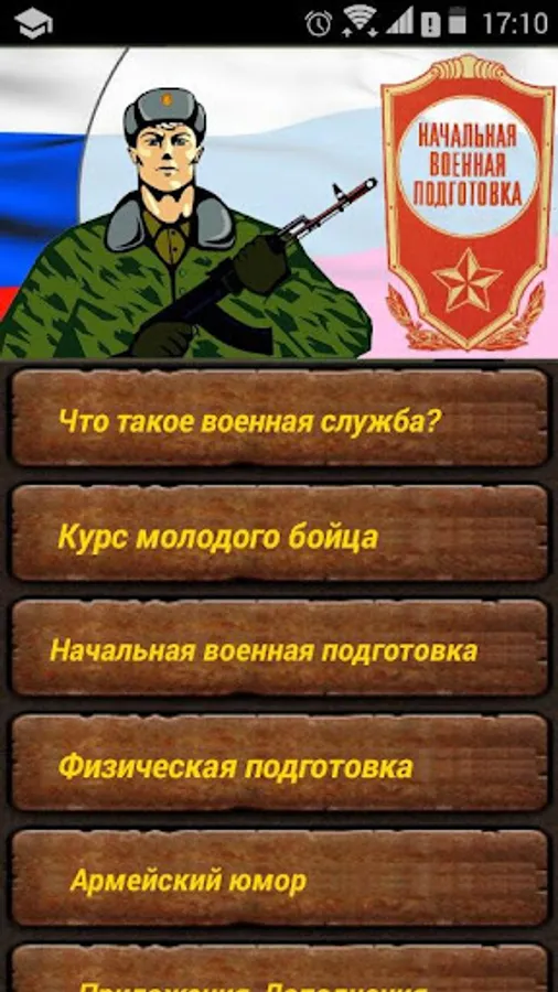 Part of the preparation of young people for military sluzhbe.Doprizyvnaya podgotovka.Osnovy military affairs, definition of the Armed Forces and its objectives; The composition of the armed forces, its structure and separation of kinds of troops, military rank system in the armed forces and decals; order of military service, and much more to get acquainted with the passage of military service. The most complete edition with applications and supplements.