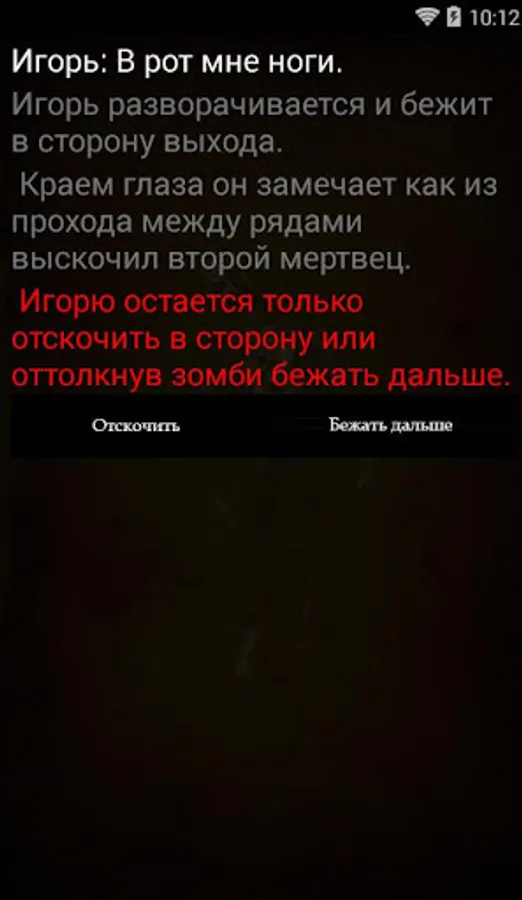 Northern capital of Russia. Our days. On the streets of St. Petersburg there are zombies. Girl Masha and her friend Igor are trying to learn how to survive in the new world. Apocalypse in St. Petersburg is a text quest game. Apocalypse in St. Petersburg is an interactive fiction in which you help the main character to make the right decisions. In this game you will be able to control the reality and the plot. From your actions depends on the fate of the character.