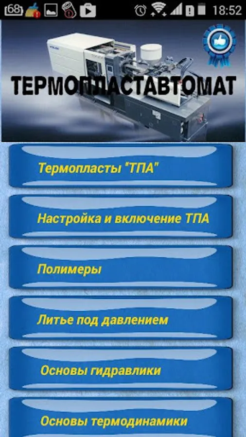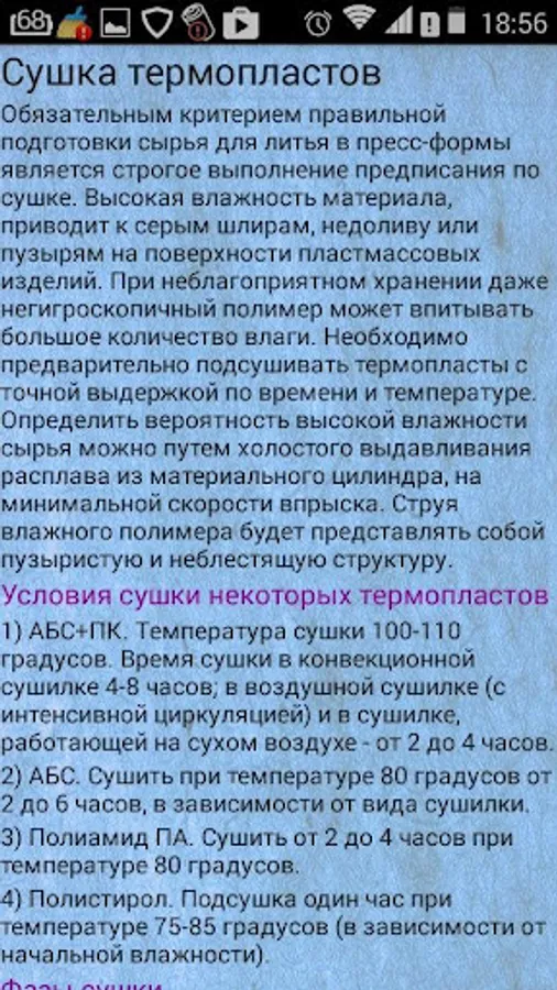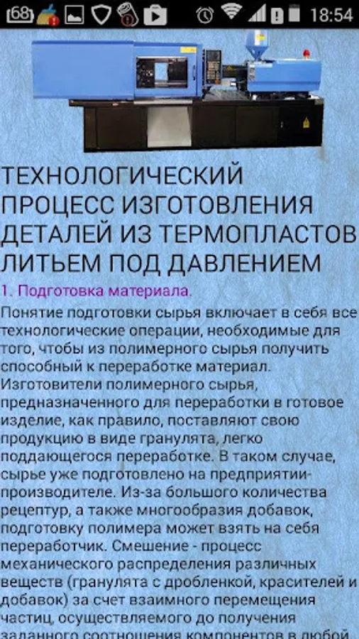 Recommended field engineers TPA as a reference for TermoPlastAvtomatov.Tak settings can also be used as a textbook for molding plastic under davleniem.Prilozhenie has a complete informative base necessary when working with TPA.V application includes such headings as: injection molding ma descriptions, descriptions of polymers, process injection molding; the basics of hydraulics, thermodynamics, electrics; TB and safety; Material preparation (drying); medical care (burns, etc.) and much more.