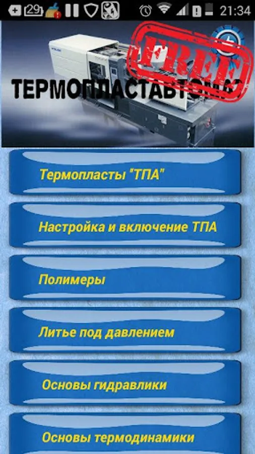 Introductory handbook on termoplastavtomatov.Tak settings can also be used as a textbook for molding plastic under davleniem.Prilozhenie has a complete informative base necessary when working with TPA.