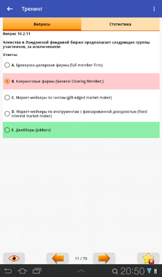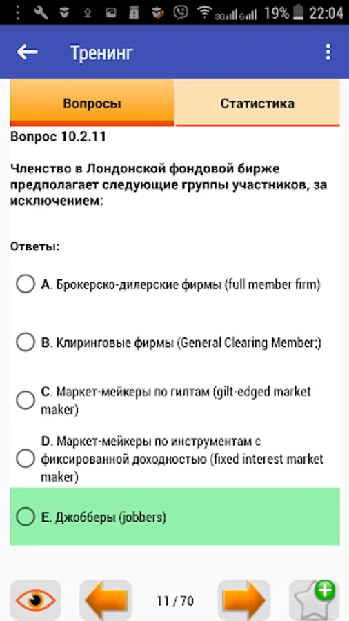 1. Training mode: designed to study exam questions on the relevant chapters, sequentially or selectively. Display of the correct answer is possible, as well as the inclusion of the prompt mode (when the correct answers are accompanied by a brief explanation or links to regulatory documents, the tasks are supplemented with a description of the solution and the color scheme for highlighting keywords in the question text is used).