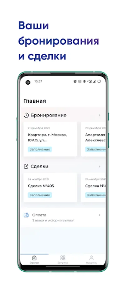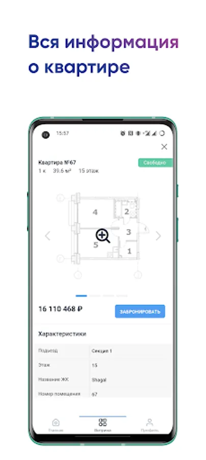 – choose a residential complex and look at the catalog of apartments, storerooms and parking spaces;