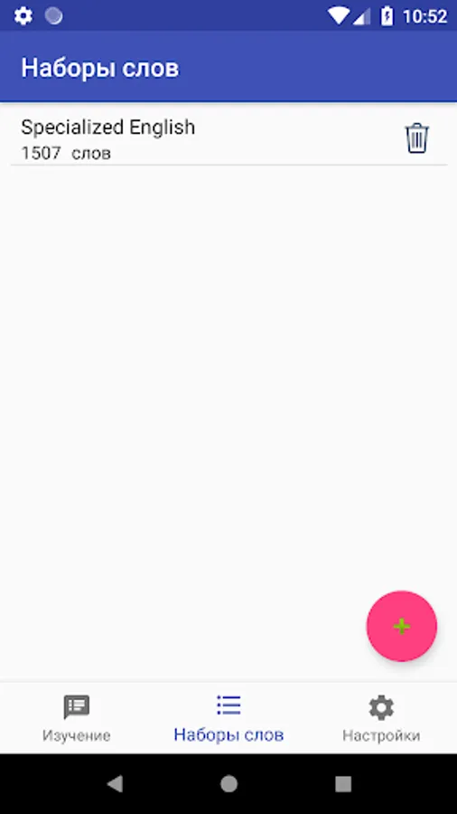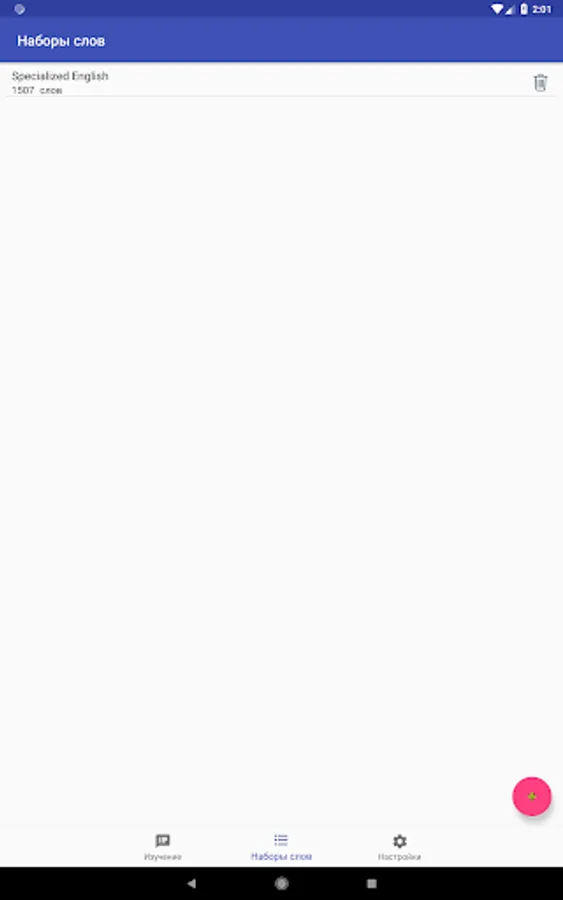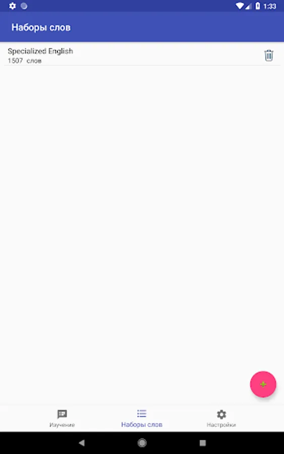 In the mobile app, you can create your own sets of English words to study or use already pre-configured set of English words.