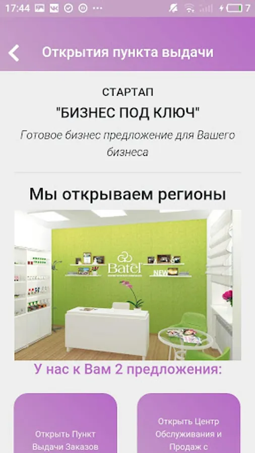 The mobile application serves to receive unique online training for starting your business at Batel, do not forget to fill out the form!