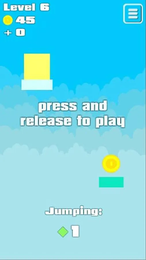 This is a simple but addicting game. Here you have to control the "living" cube. Press and release your smartphone screen to jump across platforms. Collect coins and various bonuses. The difficulty of the game will change with each level. Complete them all!