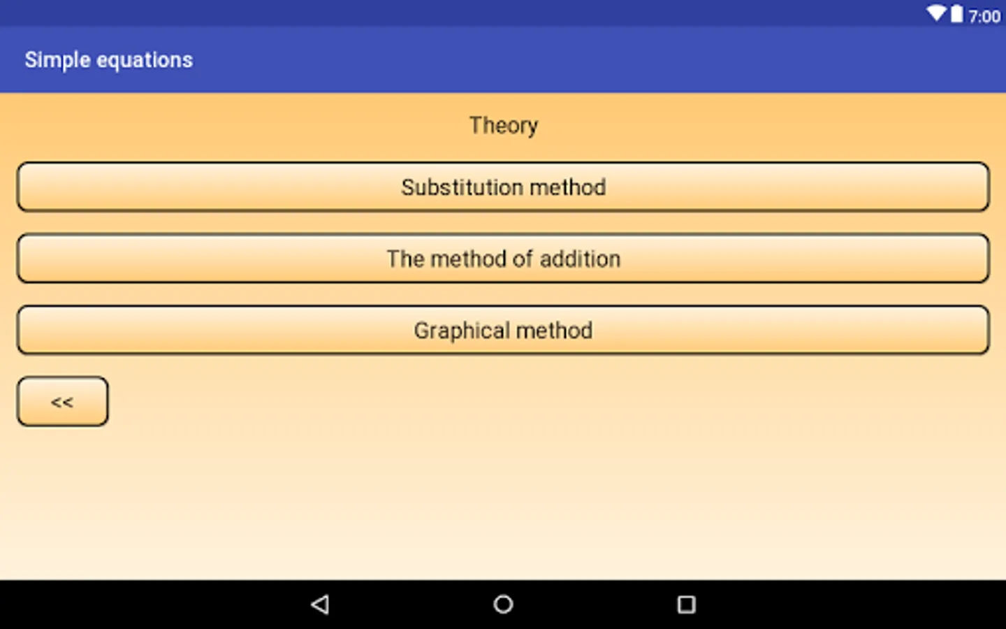 This application is designed to study mathematical systems of equations. The application contains sections of theory, practice and testing. Also in this program is the ability to keep test statistics for several students.