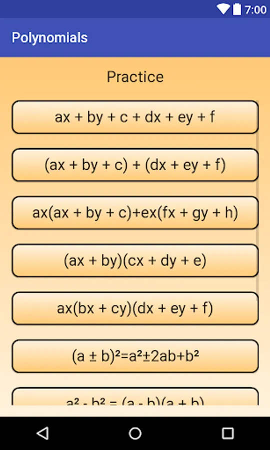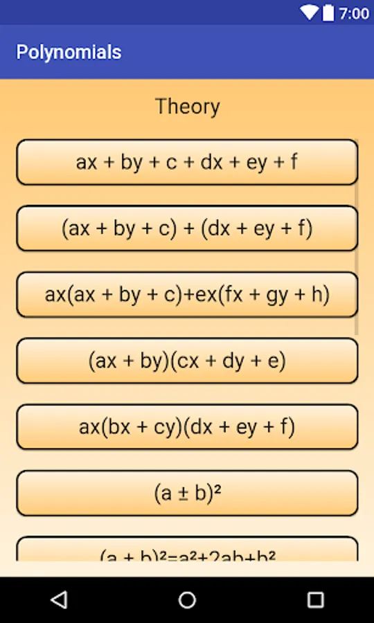 This application is designed to study the mathematical polynomials. This Appendix presents the parts of the theory, training and testing. Also in this program there is the ability to keep statistics of progress for several students.