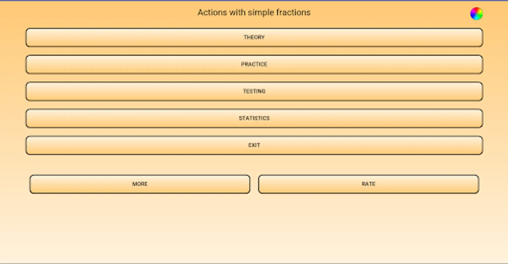 This application is designed for the study of mathematical operations with simple fractions. The annex presents the theory of partitions, training and testing. Also in the program has the ability to conduct performance statistics for several students.