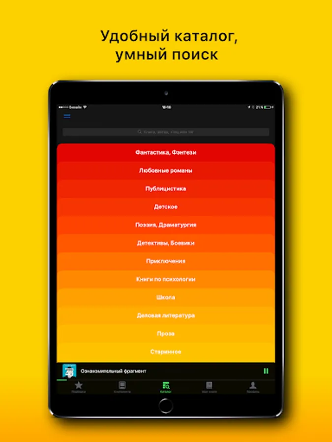 Install a beautiful and convenient application. Spend your time listening to the best audiobooks of all genres right from your smartphone.