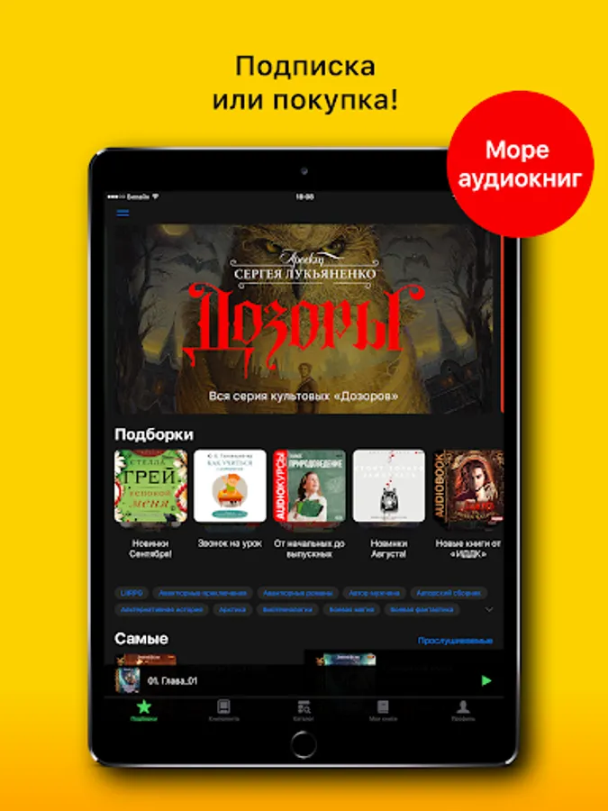Do not waste your time! Listen to books on the go, while jogging, during monotonous work, or while relaxing. A huge database of audio books available by subscription and free for 7 days!