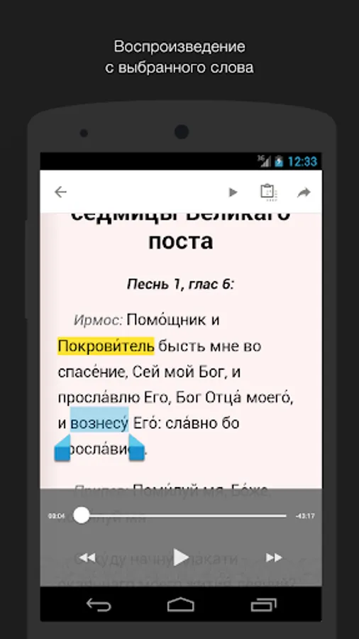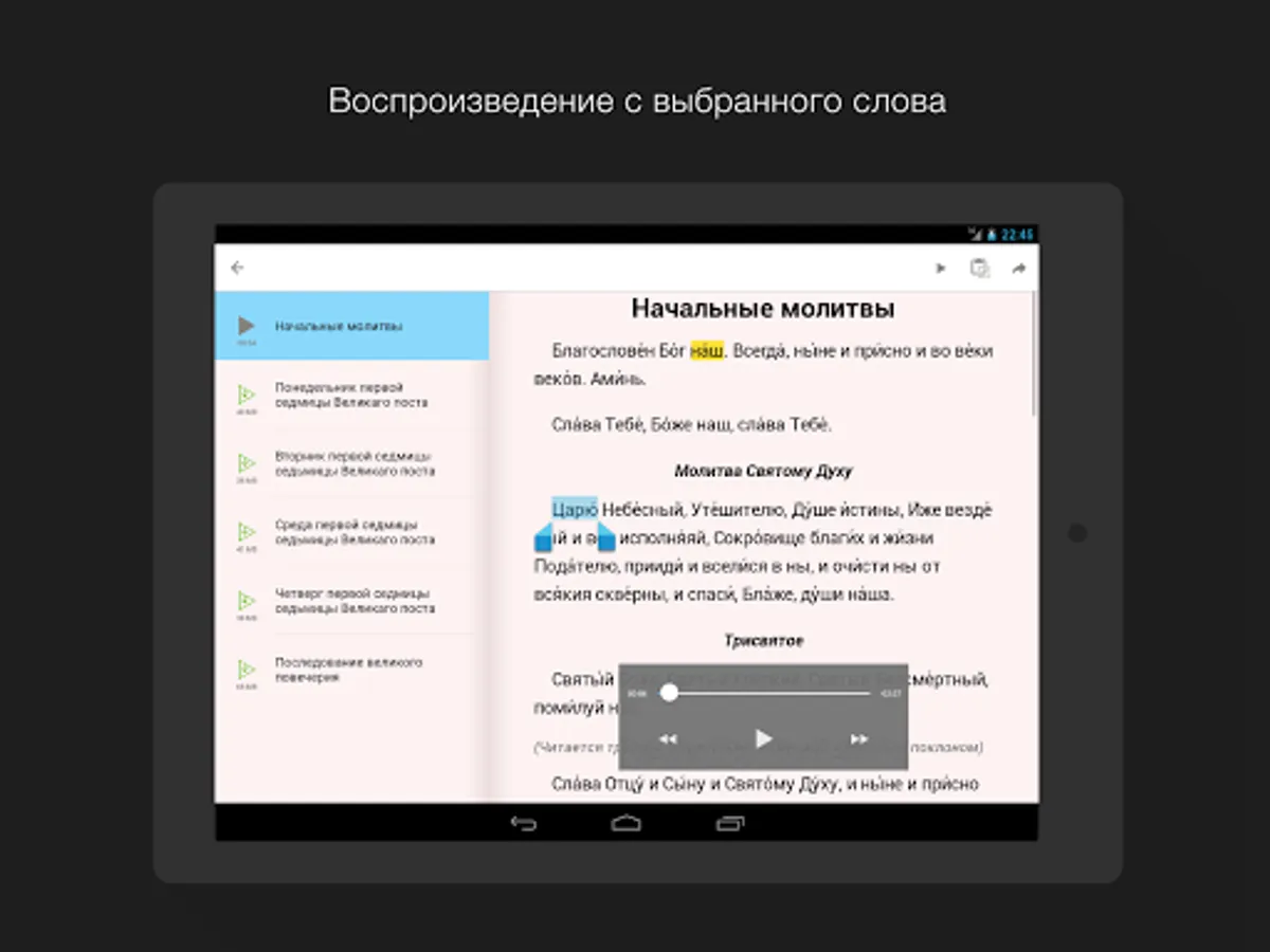Highlighting in record spoken words can monitor the text, it helps to better understand and memorize prayers.