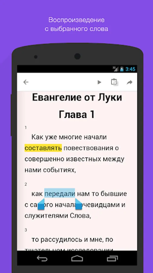 · Playback of the selected word using the long touch;