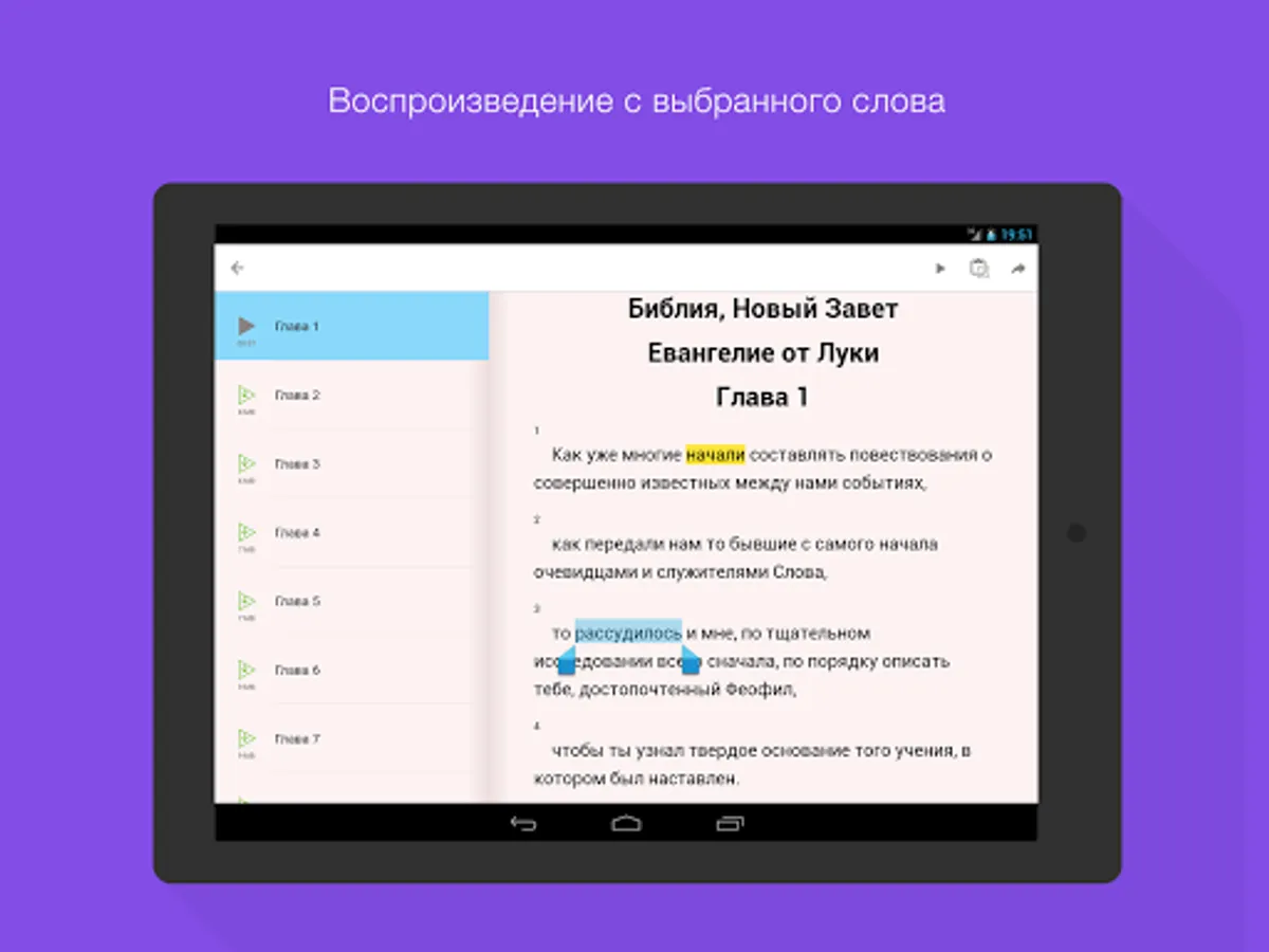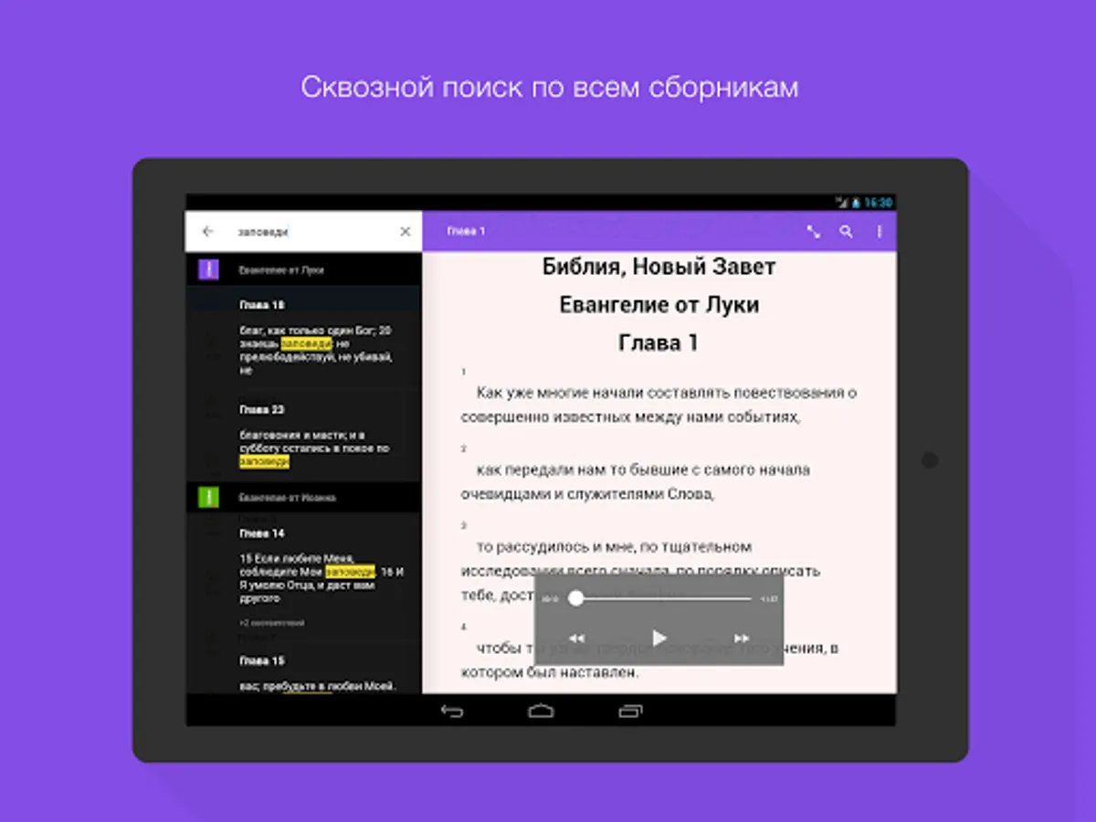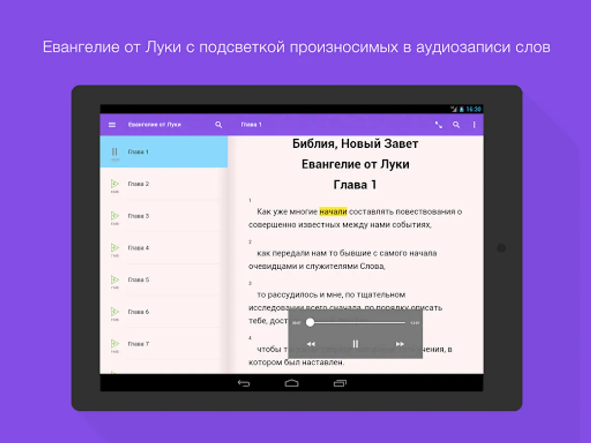 Ability to listen to allows to plunge into the unique atmosphere of Bible stories when reading is impossible (at the wheel, in the disease).