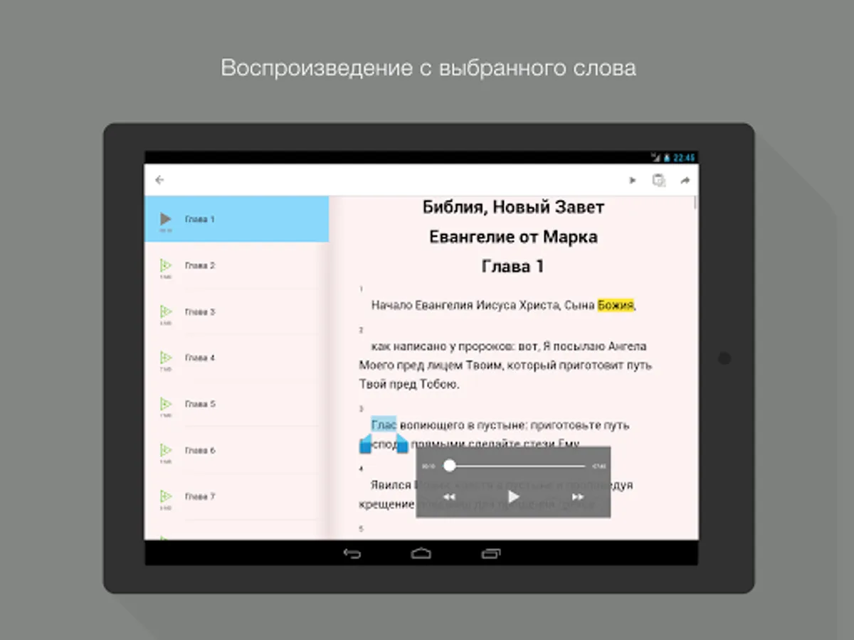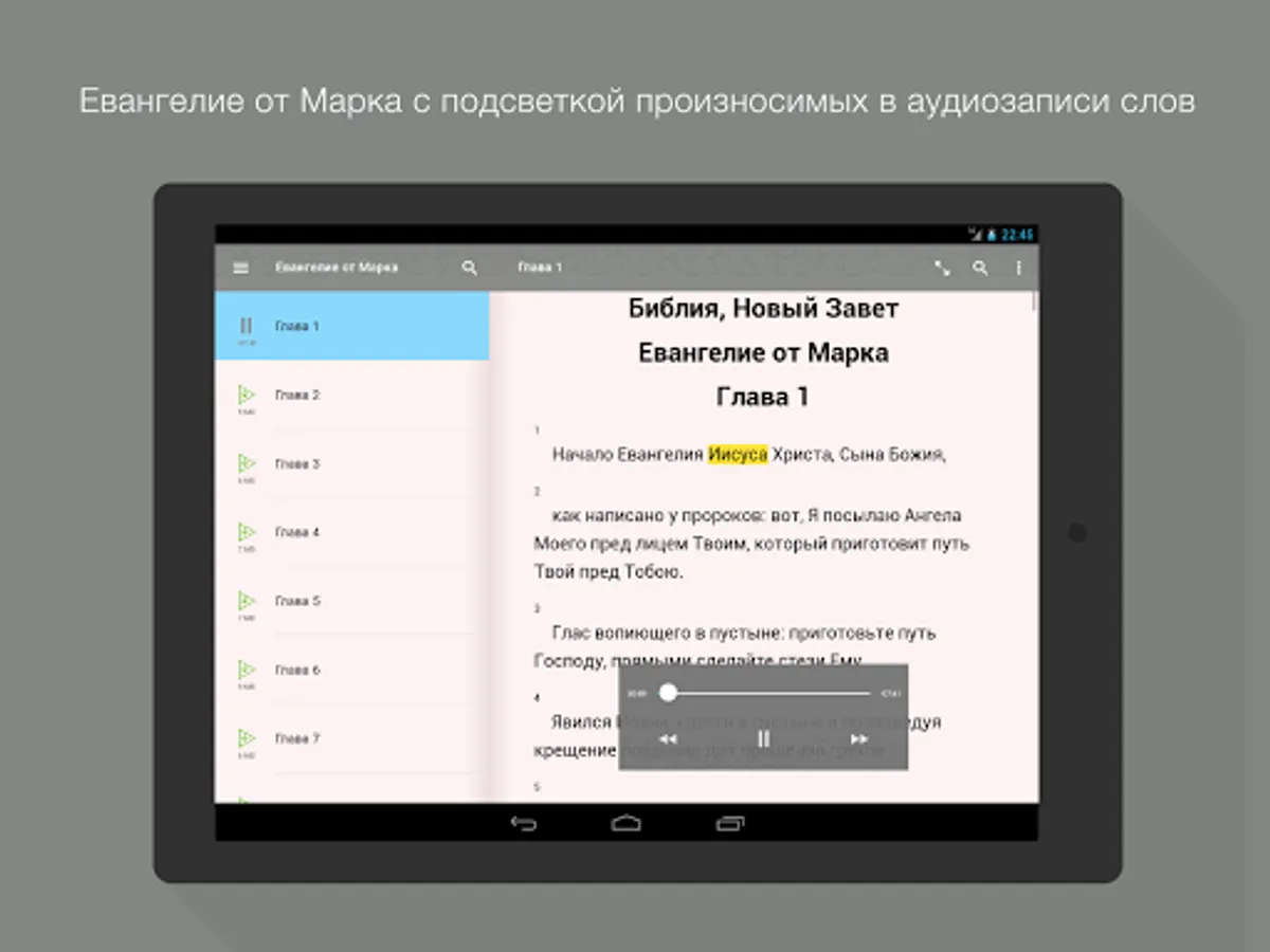Ability to listen to allows to plunge into the unique atmosphere of Bible stories when reading is impossible (at the wheel, in the disease).