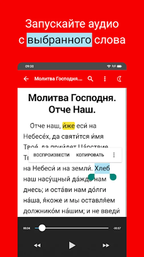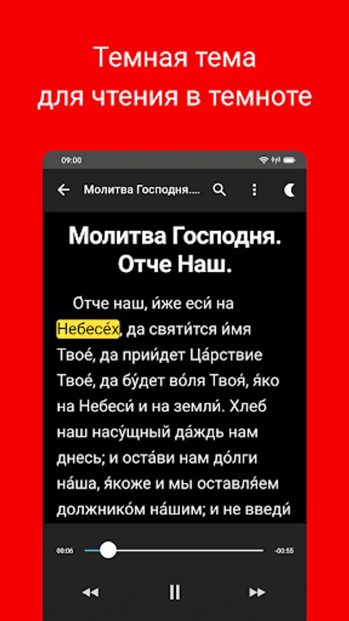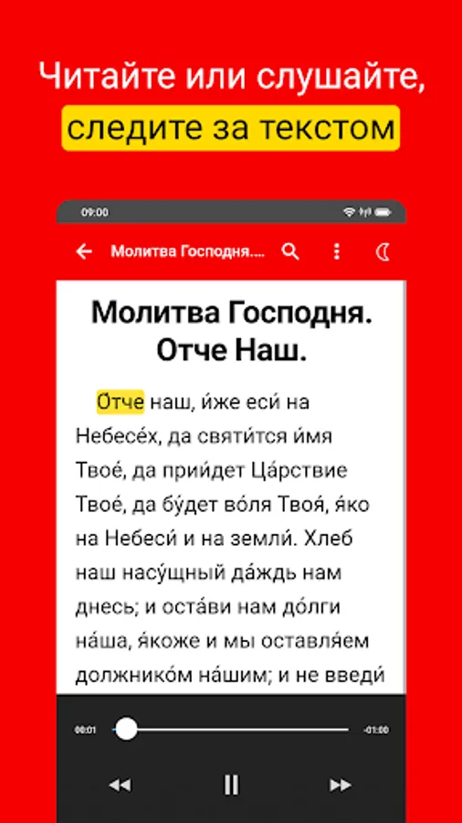 The highlighting of the words spoken in the audio recording allows you not to visually lose the readable place.