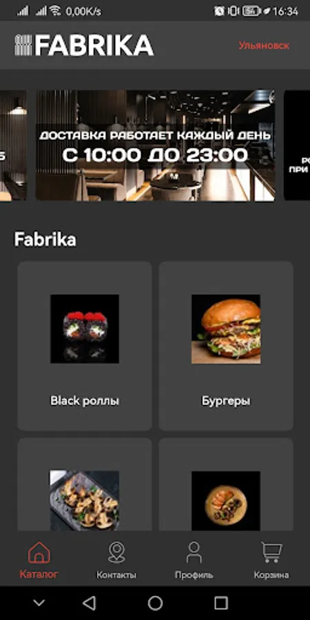 The FABRIKA mobile application is a cafe and delivery service with a huge range of dishes on the menu: the best that European and Japanese cuisine can offer is on the menu.