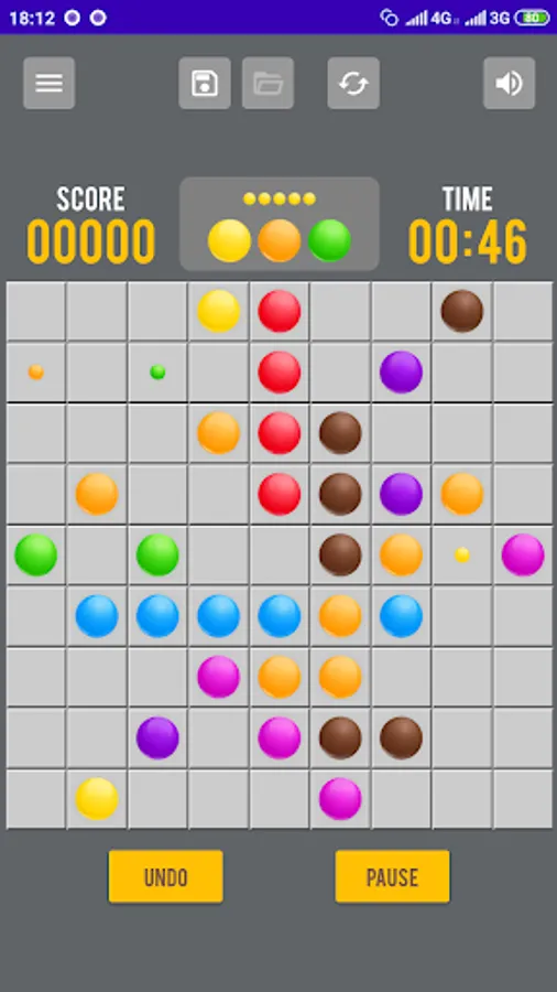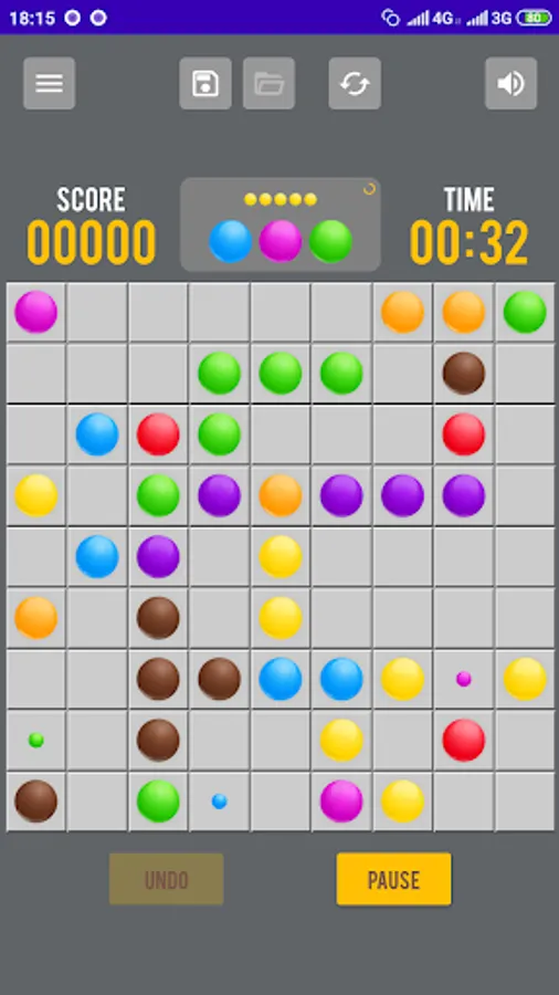 Color Lines is a fun and easy puzzle game. The goal of the game is to score the maximum number of points by making lines of balls of the same color horizontally, vertically or diagonally. You can move balls to any point on the playing field, if there is a path there.