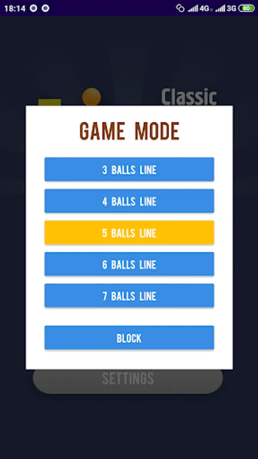 • the ability to choose a game mode with the number of balls in a line;