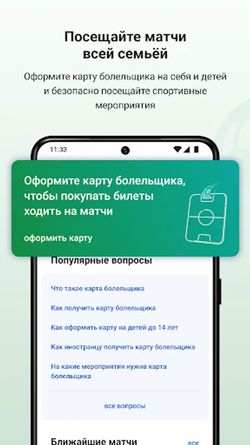 The official application "Public Services Fan Card". Get a card, buy tickets, transfer them to family, friends and attend sporting events
