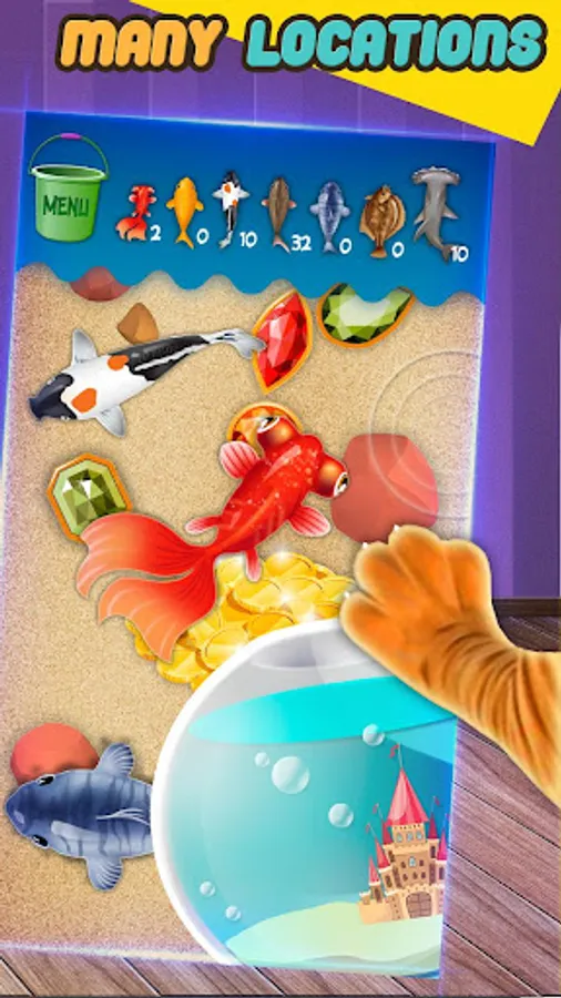 A lot of bright fish, believable floating on the screen, will not let him rest!