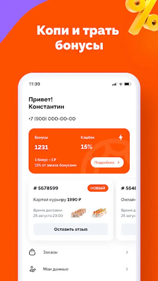 Thanks to this, all menus, promotions and your data are always available in the same way as a website and a call to our federal Call Center. All promotions/gifts and discounts are applied automatically if you have an Internet connection!