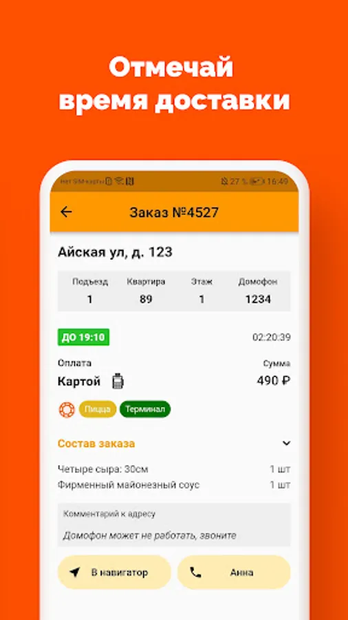 - Mark the exact time of delivery of the order to the client - even if the Internet does not catch at the entrance :)