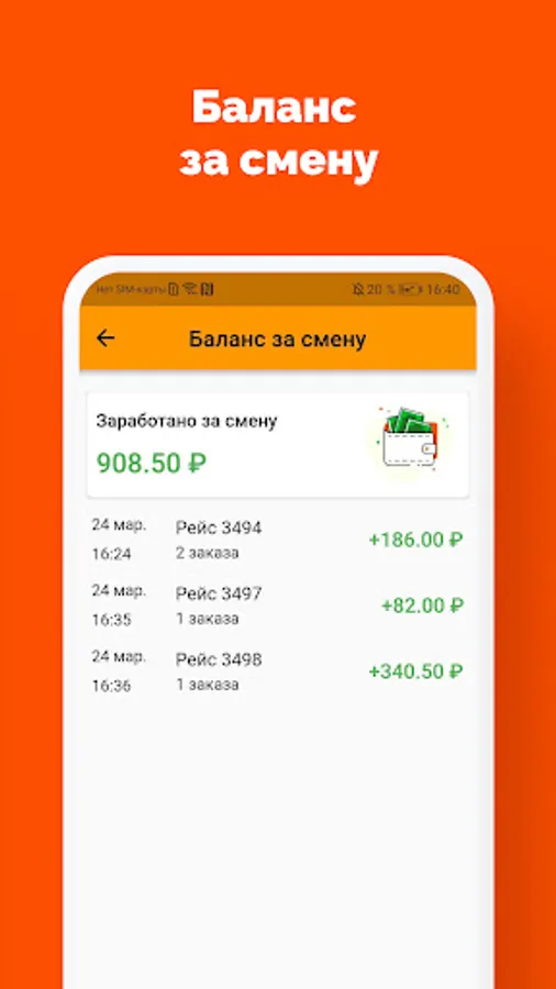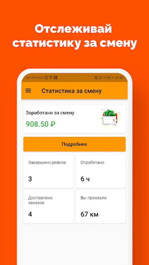- See your statistics for a shift - delivery history, kilometers, as well as salary and its details