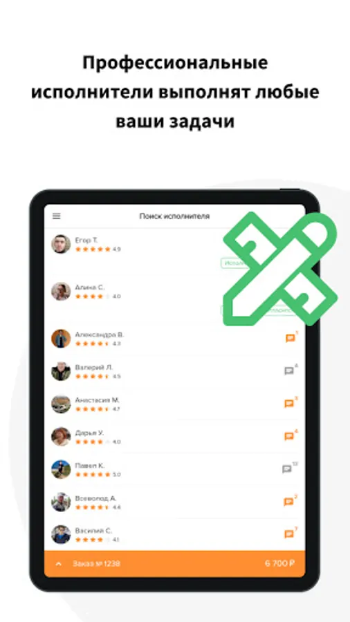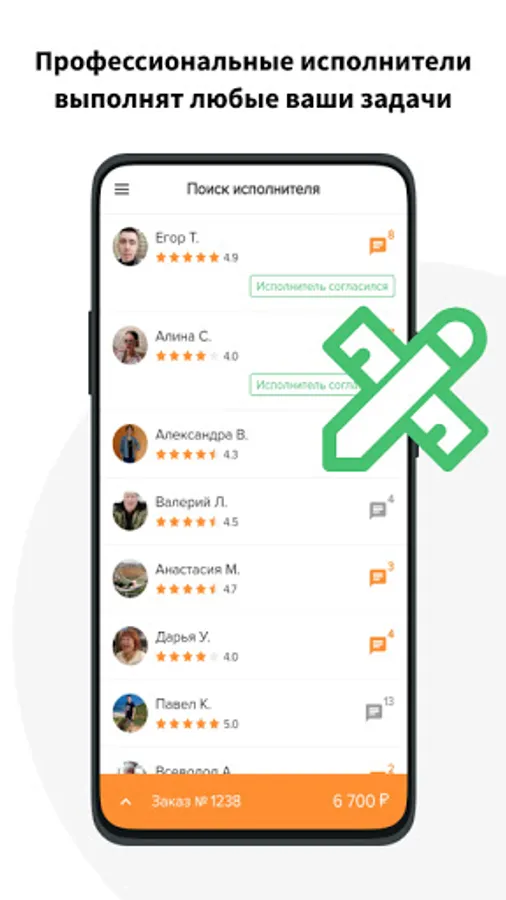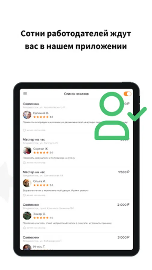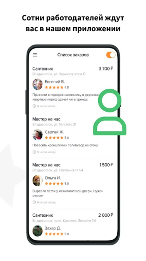 Any city of the Russian Federation, masters are citizens of Russia. Search for the best performer, at the best price. Be sure to try it, you'll love it! The main advantage of the application for the customer is the distribution of your work to all suitable masters. There is a GEO binding, your order will be seen only by masters from your city / locality.
