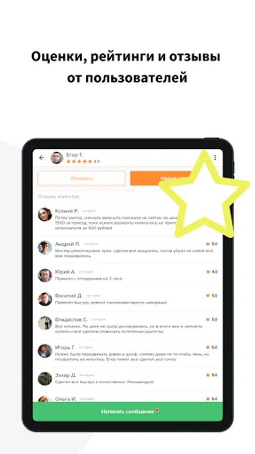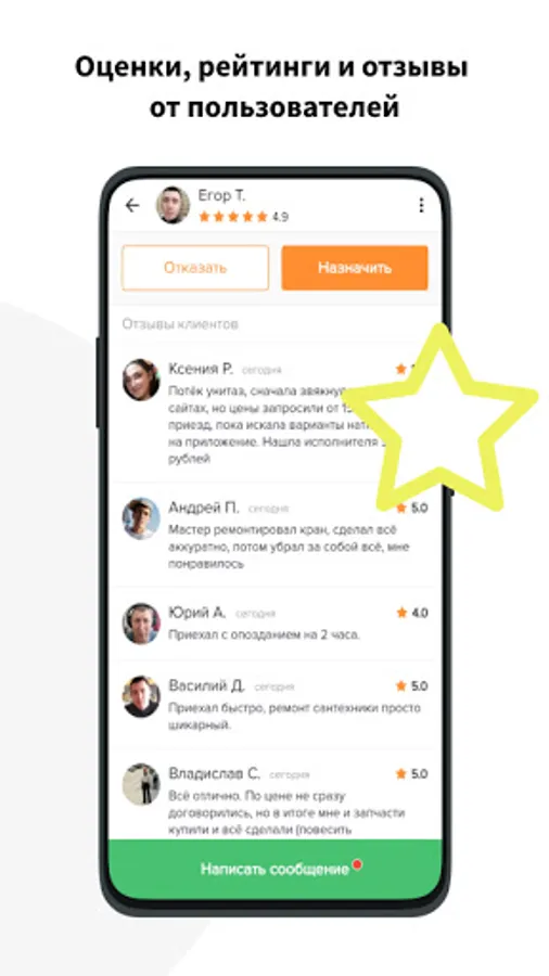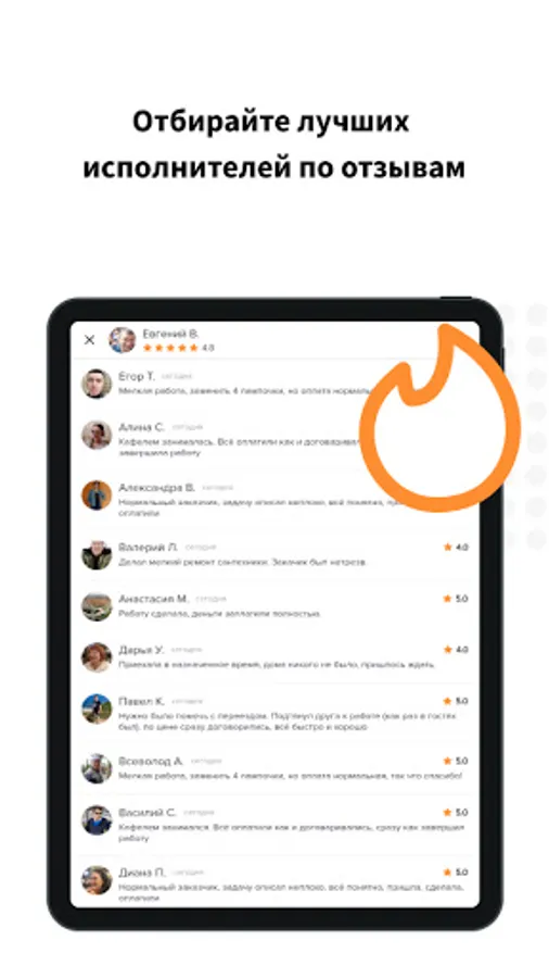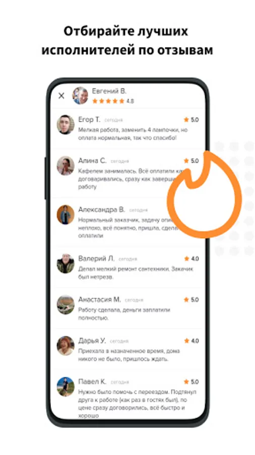 RELIABILITY. Since the performers come to your home, safety is of the utmost importance. The application has a rating and reviews, according to which you can evaluate the employee before assigning him.