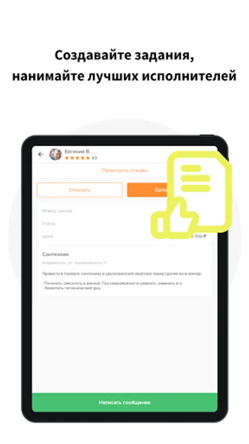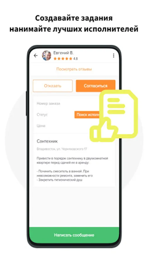 Will be done! is an application designed to find the nearest contractor for the work of a foreman, electrician and plumber. The fastest search, the reputation of performers in the form of reviews. Absolutely free for customers!