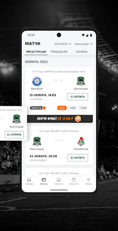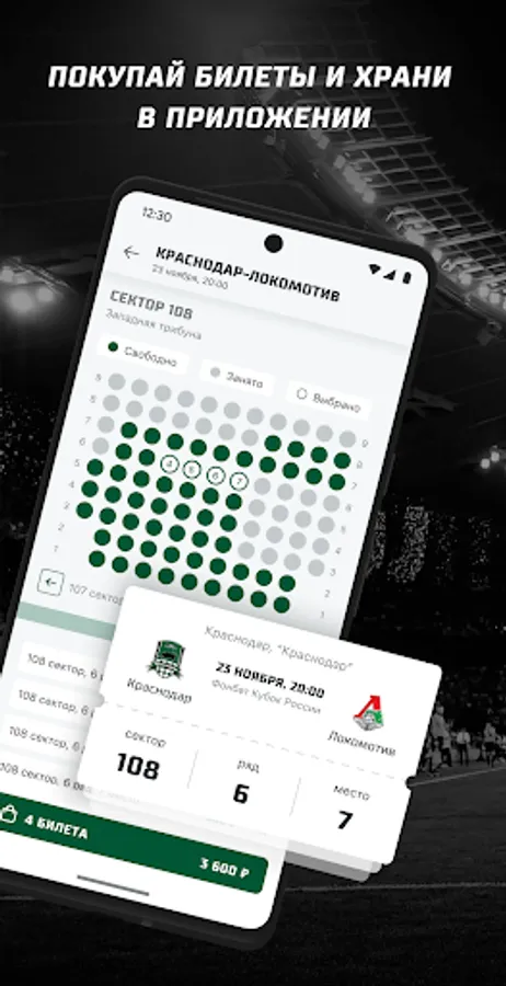 You can also enter your personal account, purchase tickets and subscriptions. Store and view season tickets and purchased tickets right in the app.