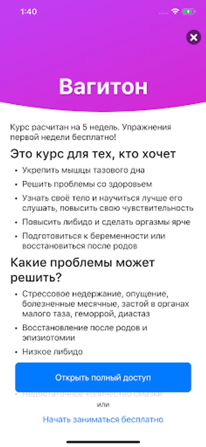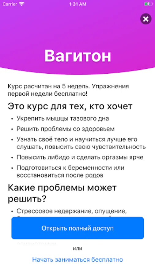 Intimate gymnastics, or pelvic floor muscle training, is necessary for a woman of any age. Everything in the body is interconnected, and therefore the application offers an integrated approach to training: muscles, the pelvis and hip joint, and the abdominal diaphragm are included in the work.