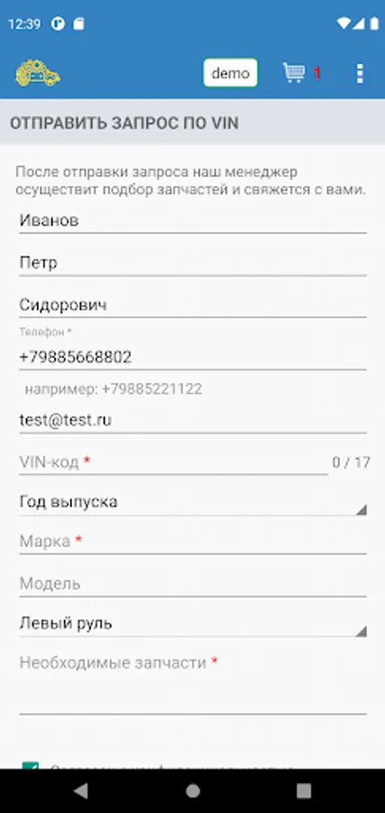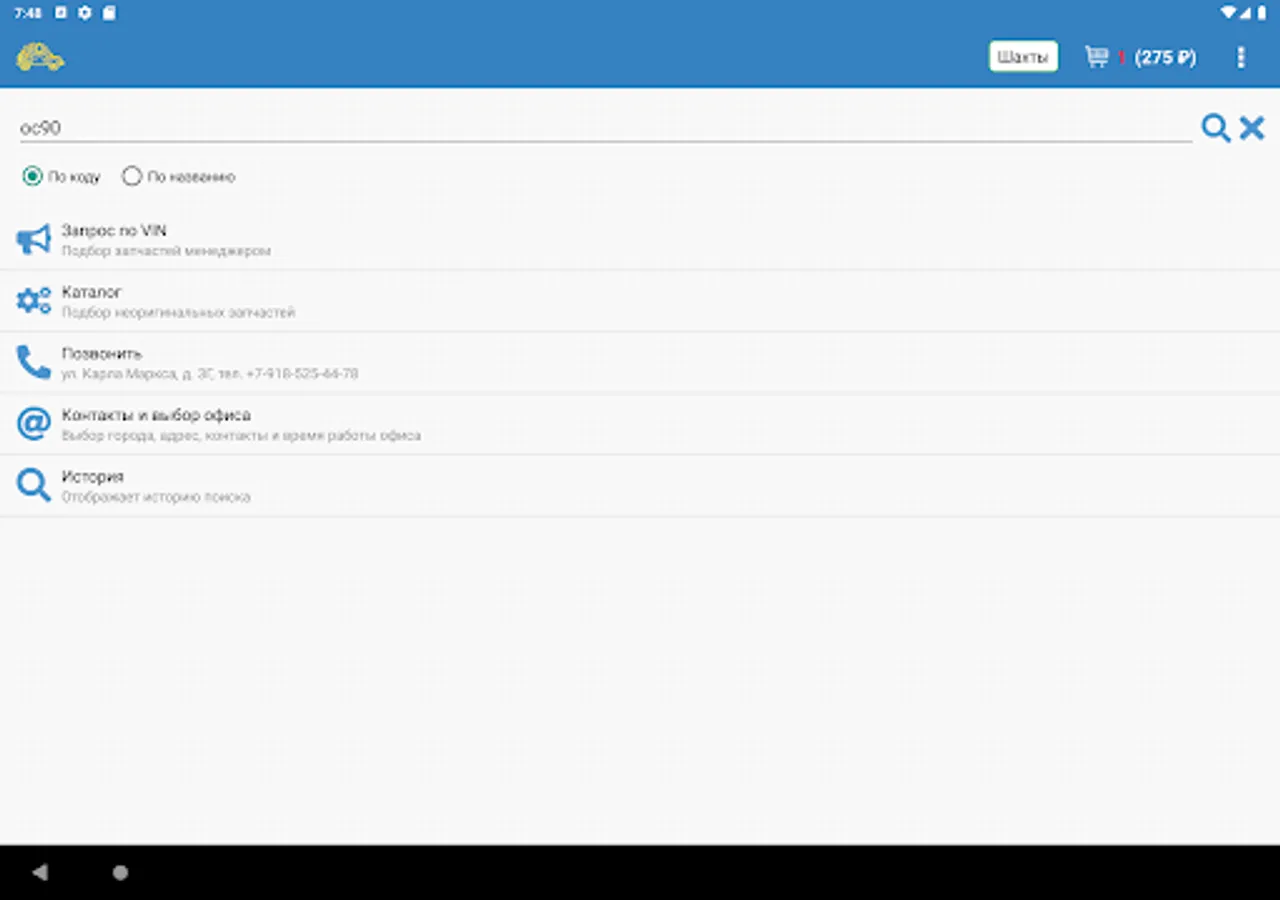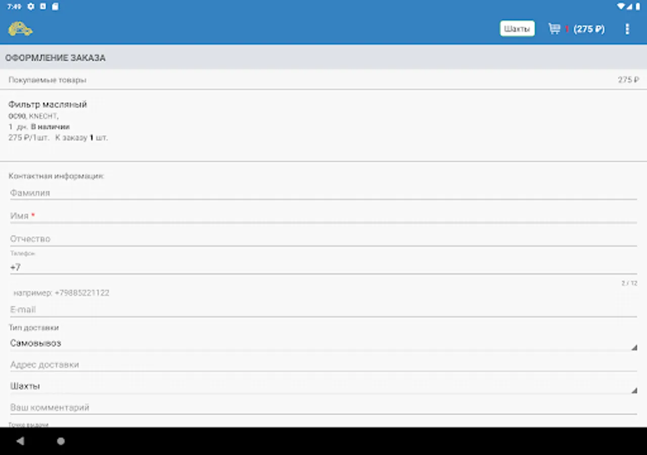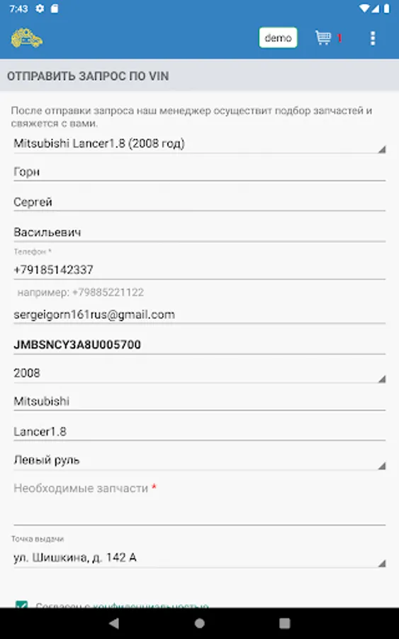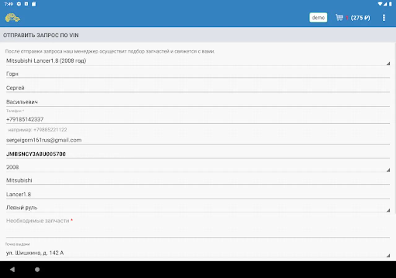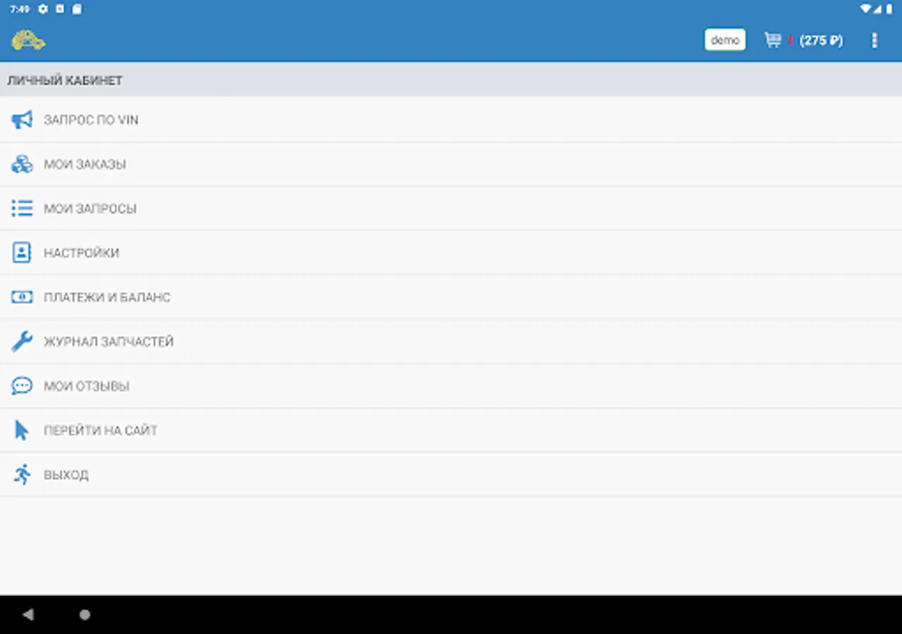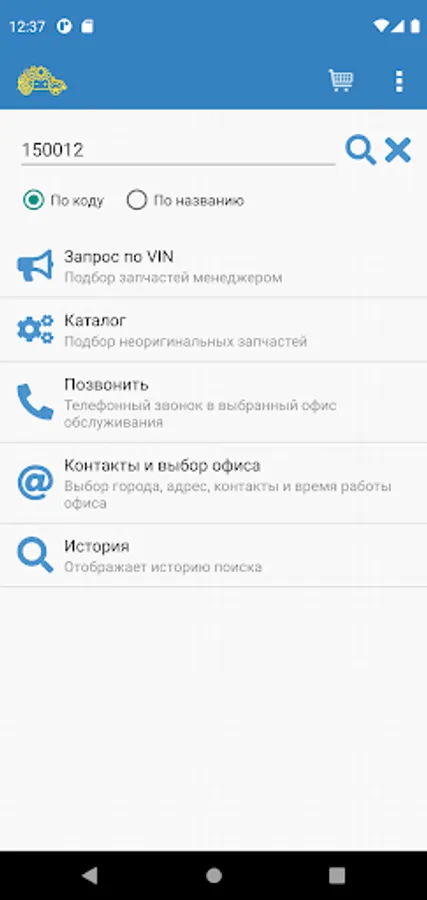 The application makes it possible to select and buy spare parts for foreign and domestic cars in the Fifth Gear online store network. For your convenience, the application contains a page for sending a request for the selection of the necessary spare parts by VIN, contact information for offices in Russia, the ability to independently place orders at a discount, and a multifunctional personal account.