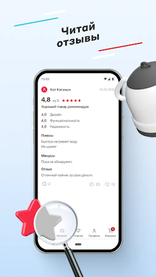 • Scan products using QR codes in the store and add them to your cart. Clear product descriptions and customer reviews will help you make an informed decision.
