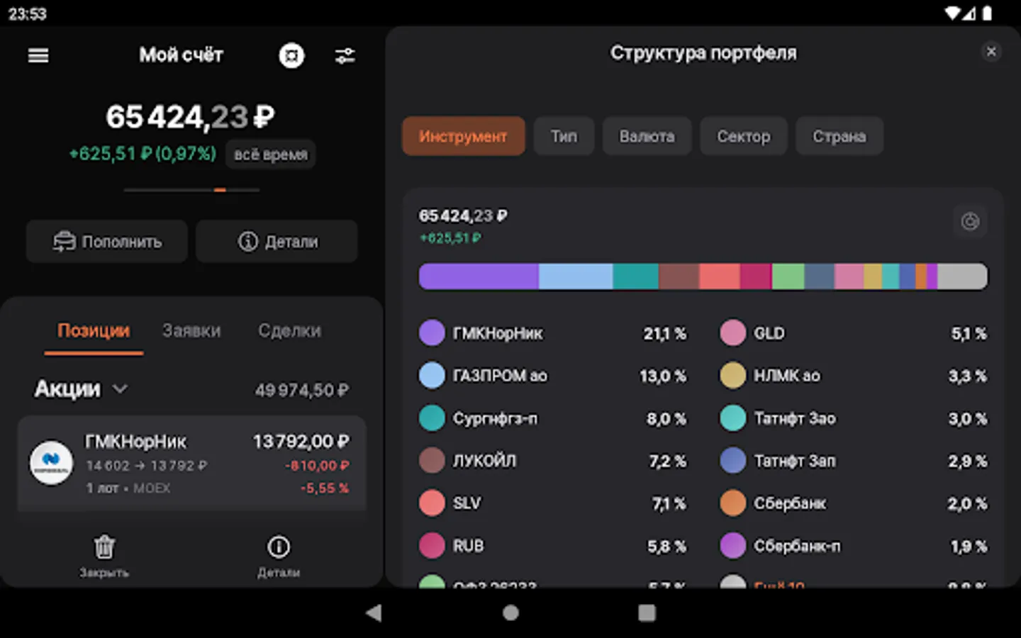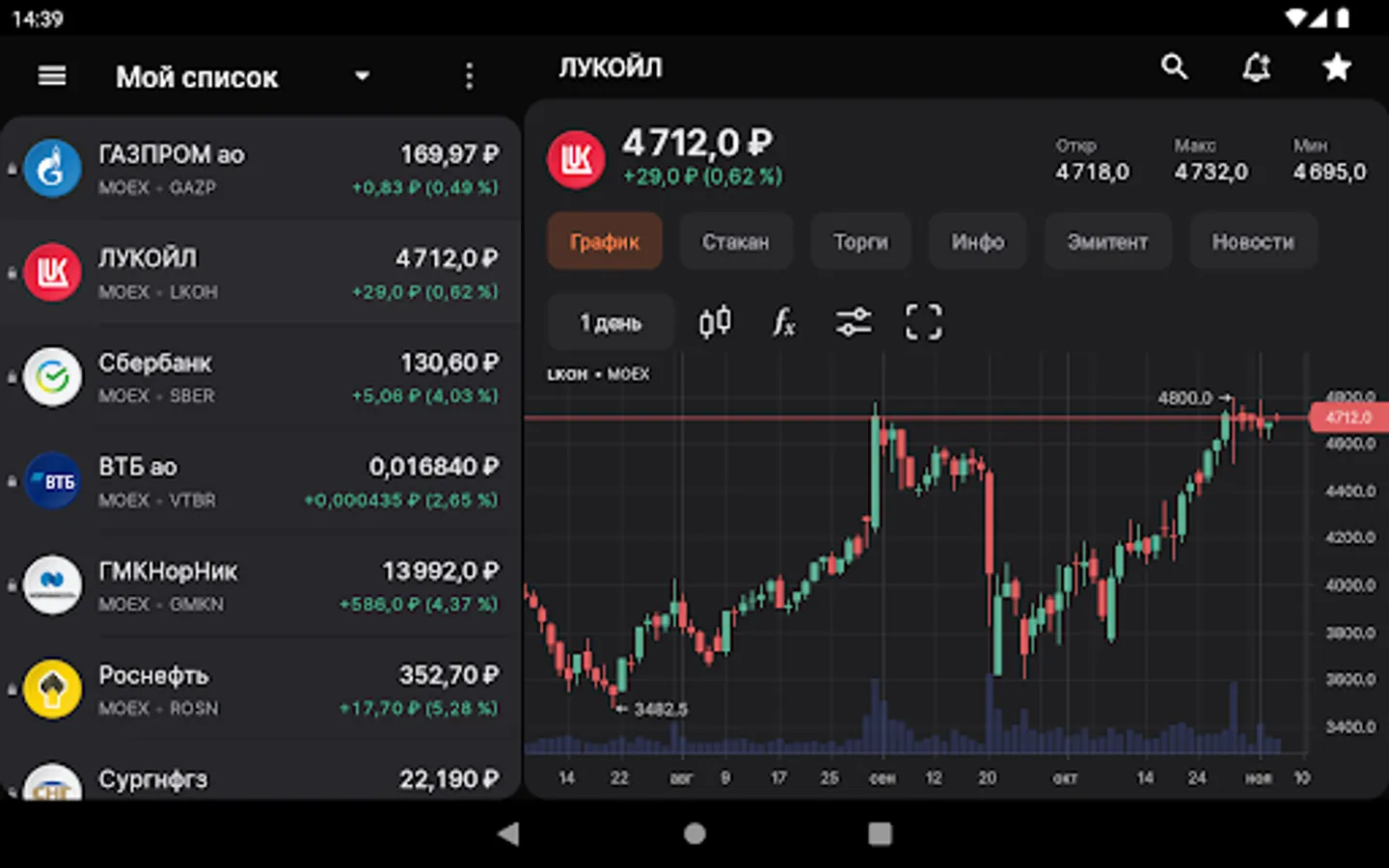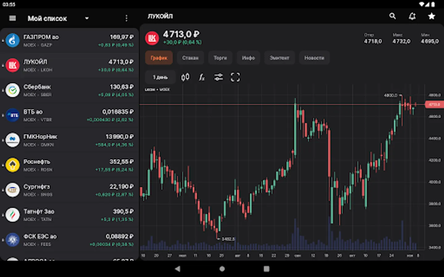 Check out real-time quotes and charts of financial instruments, trade, watch the course of trading, keep abreast of current exchange news and macroeconomic events — all in one application!