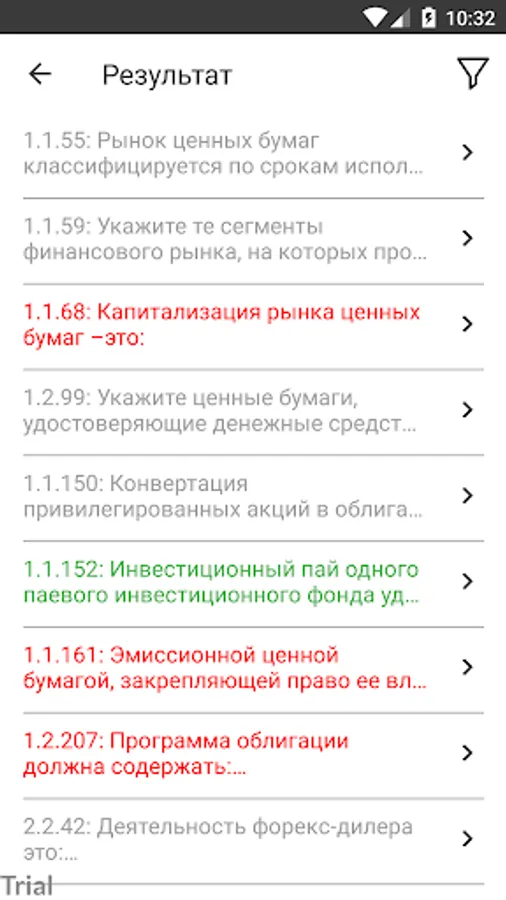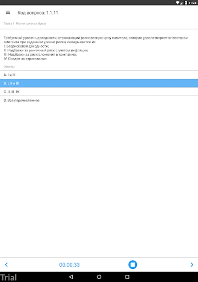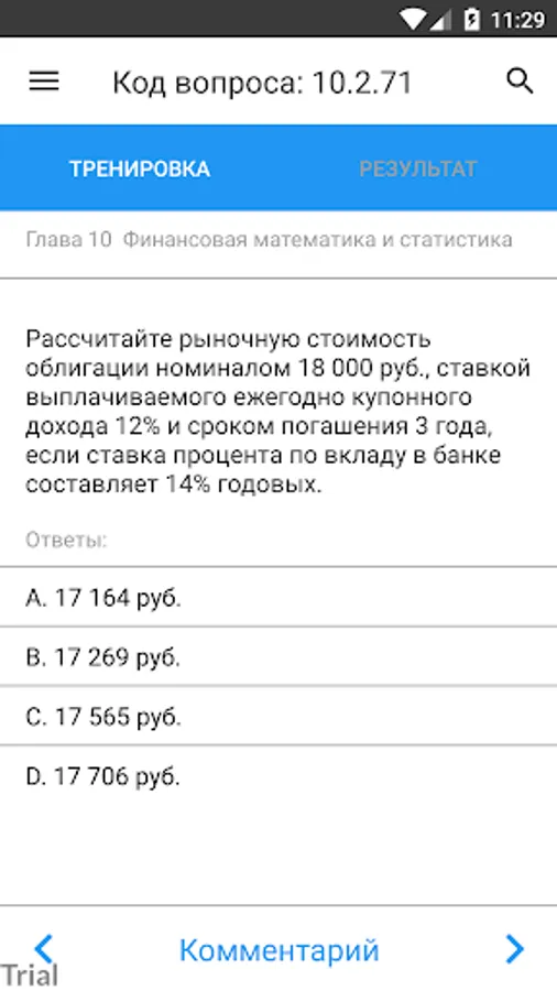 • In response training mode questions in one chapter, a few selected chapters or all chapters;