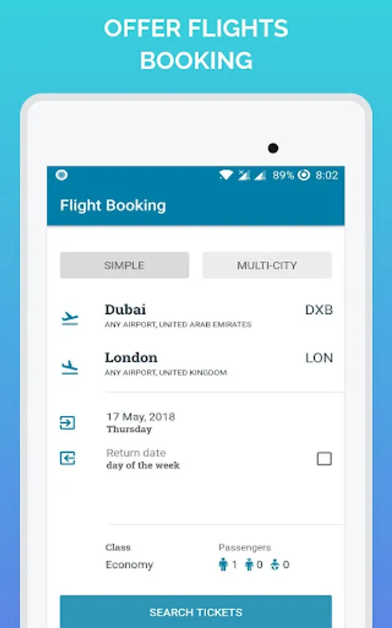 Offer Flights app helps you to find the best airfare by comparing worldwide online travel agencies and airline website. The companies that we comparing are like kayak, google flights, tripsta, kiwi flights, myholidays, mytrip, cleartrip, sastiticket, expedia, airfarewatchdog, bookingbuddy, scotts cheap flights, cheaptickets, priceline, jetradar, aviasales, tutu, Aviata, Yandex Flights, Anywayanyday, wotif, goibibo, smartfares, flightnetwork, momondo, and many more are there with us. We constantly adding more partners with us to get the best airline fare for our customers. Our app is best for booking domestic,international, budget and last minute flights with the lowest price using existing offers and discounts. We are in cooperated with many budget airlines such as Ryanair, AirAsia, Flydubai, Norweign Air, Westjet, Jetstar, Indigo, Southwest, Eurowings, Scott, Peach, Vueling, Nok air, Jetblue, Spirit Airlines, Frontier, Virgin America and more.