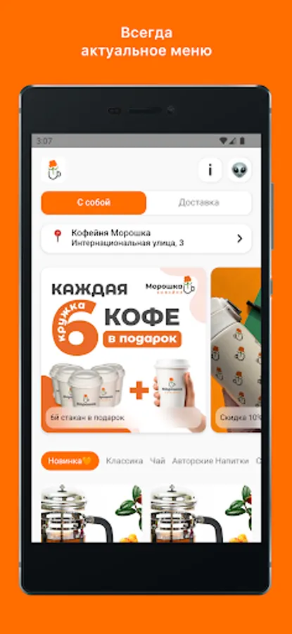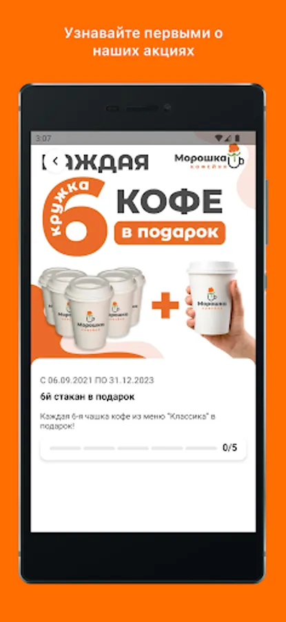 The application of the Moroshka coffee shop chain.