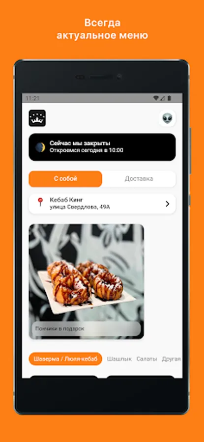 We invite you to visit the cozy cafe "Kebab King" in Liski or place an order with delivery! Always delicious food of Eastern, European and Asian cuisines, fresh coffee, smiling staff and low prices. The Kebab-King menu includes many items for every taste.