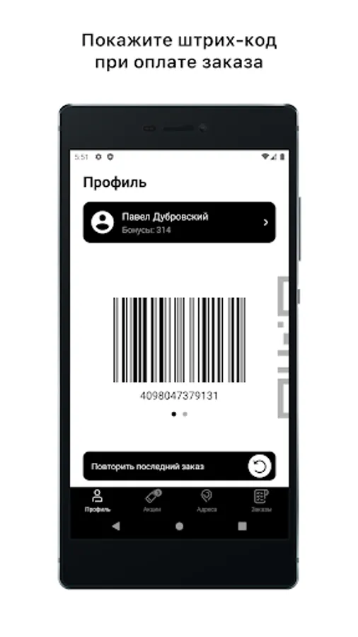 Download the app, get your unique QR code and show it at the checkout.