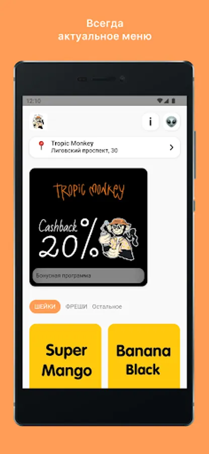 Juicy fresh juices, thick necks and daring lemonades from the Tropic Monkey team are always waiting for you at the Gallery shopping center in St. Petersburg. Download the Tropic Monkey app and get: