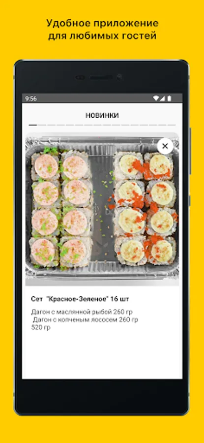 Using the application, you can order sushi, rolls and many other dishes.
