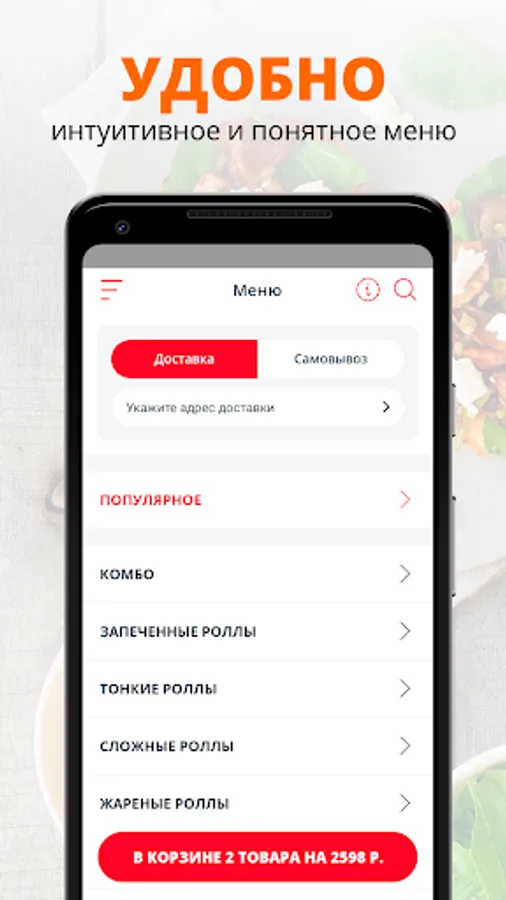 Use the convenient application for ordering food "Delicious sushi | Nizhnevartovsk.