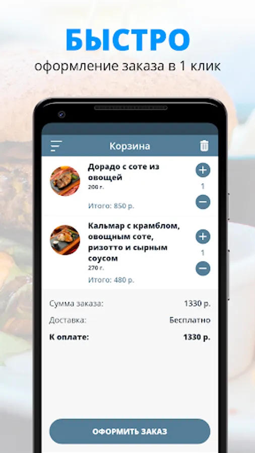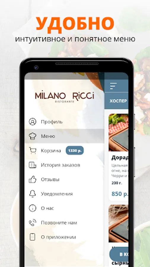 Use the convenient application for ordering food "Name".