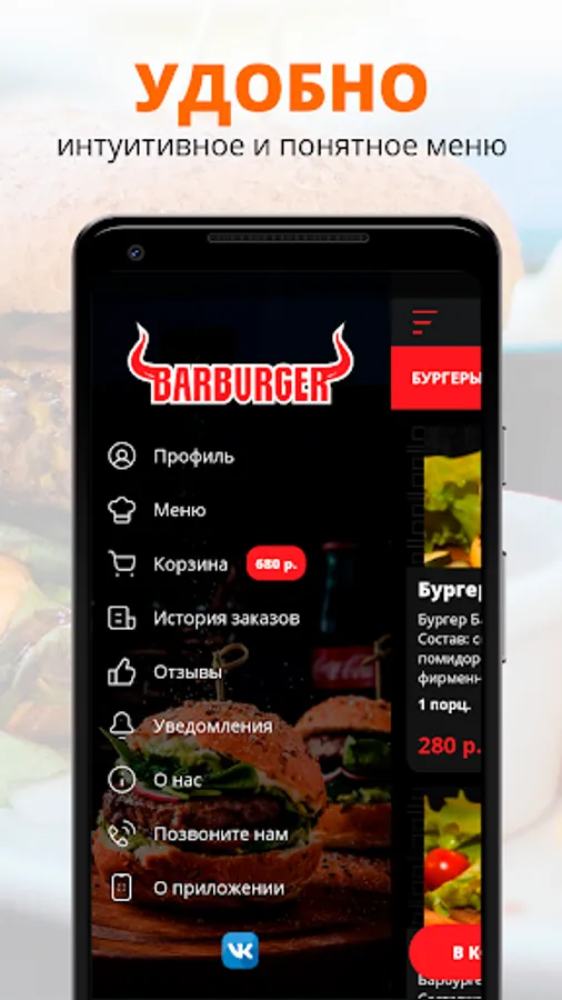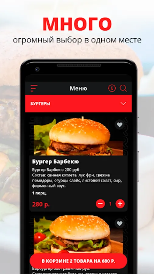 In the Barburger menu, everyone will find a dish to their liking: powerful author's burgers, juicy kebab shawarma, kebab, delicious hot dogs, as well as a large selection of snacks (delicious shrimp, fragrant potatoes, tender cheese balls and much more).